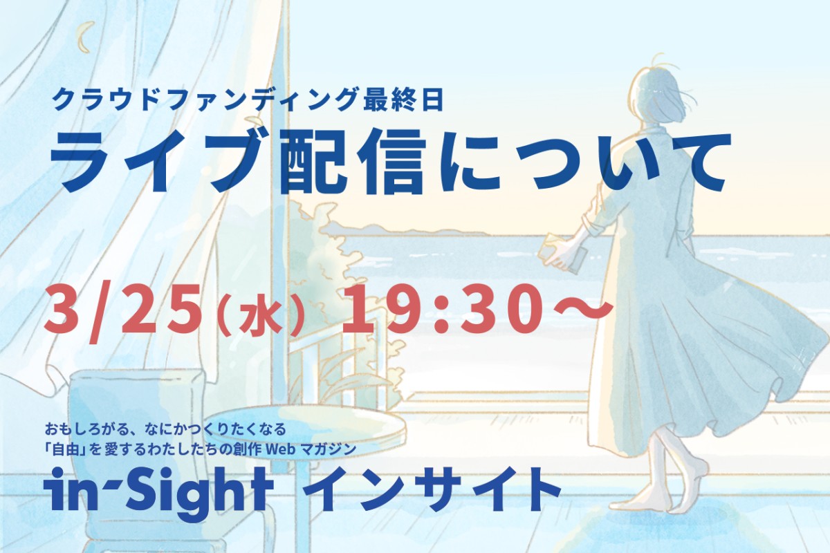 「in-Sight インサイト」クラウドファンディング最終日ライブ配信、まもなく19:30より開始します。